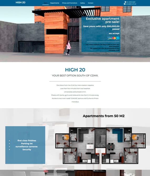Este paquete esta pensado para emprendedores que no cuentan con página web y requieren contar con presencia en linea de forma rápida, si su proyecto requiere más secciones o características adicionales le invitamos a contactarnos dando clic aqui, para cotizarle de forma adecuada